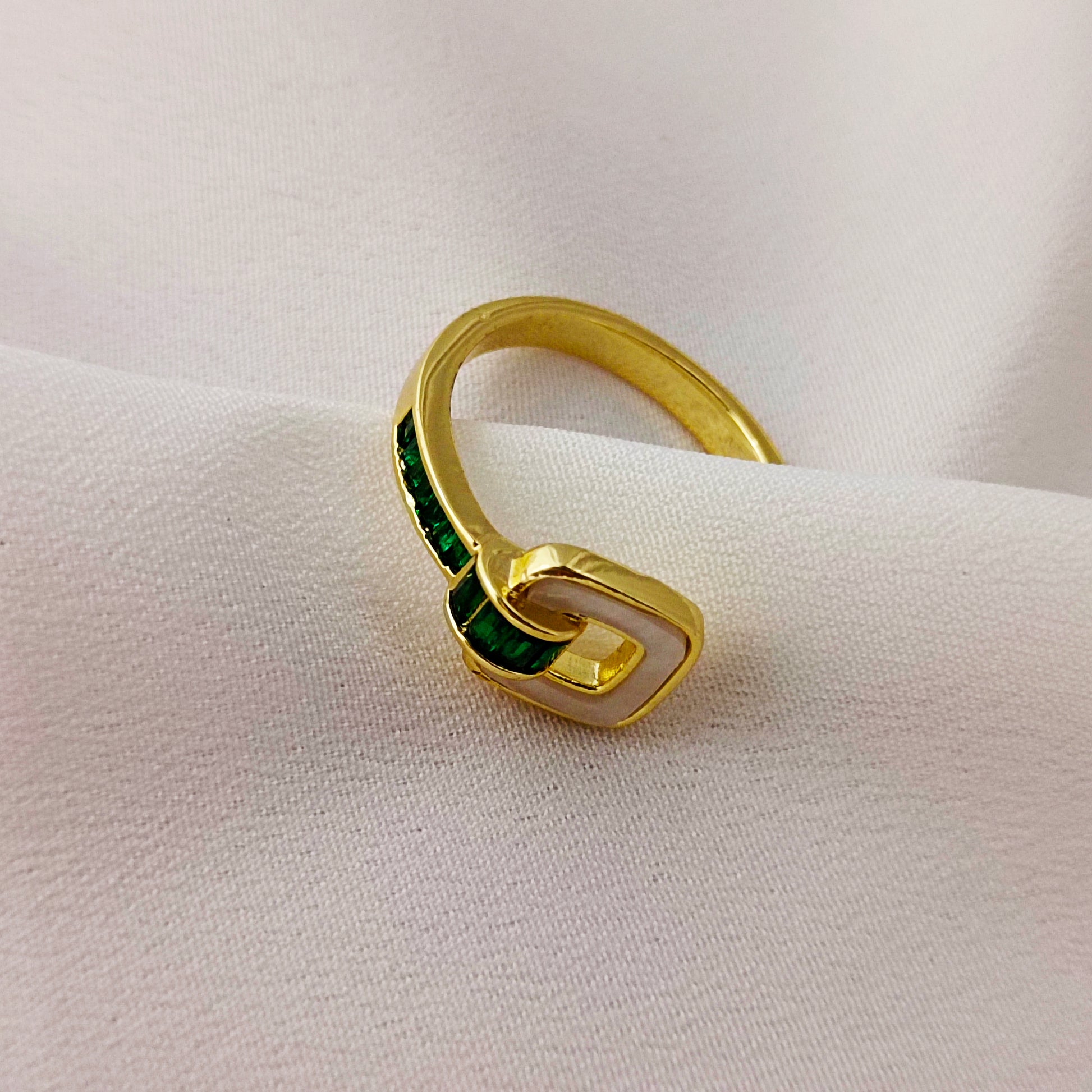 Emerald Stone Ring – 18K Gold-Plated Adjustable Ring