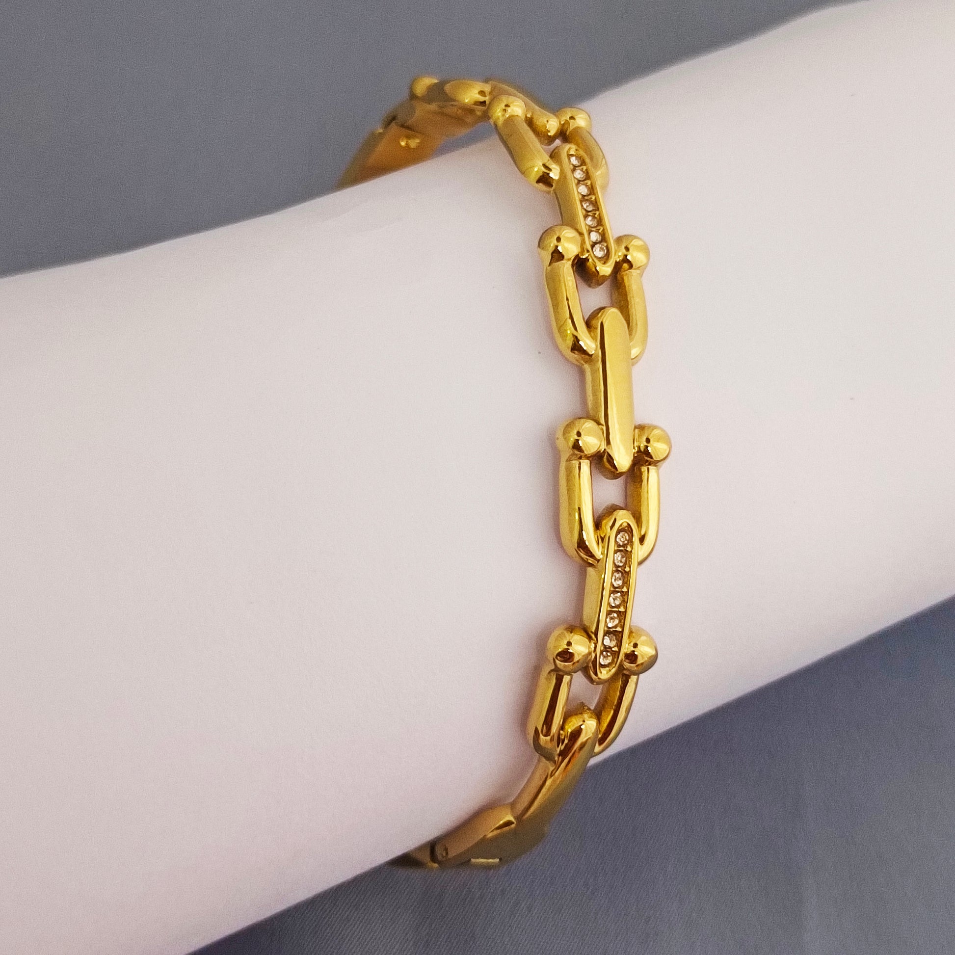 Add a radiant touch to your summer style with the Summer Splash 18K gold-plated bracelet — where timeless elegance meets modern sparkle. Crafted from premium stainless steel and coated with a rich layer of 18K gold, this bracelet shines beautifully while staying resistant to tarnish and fading.